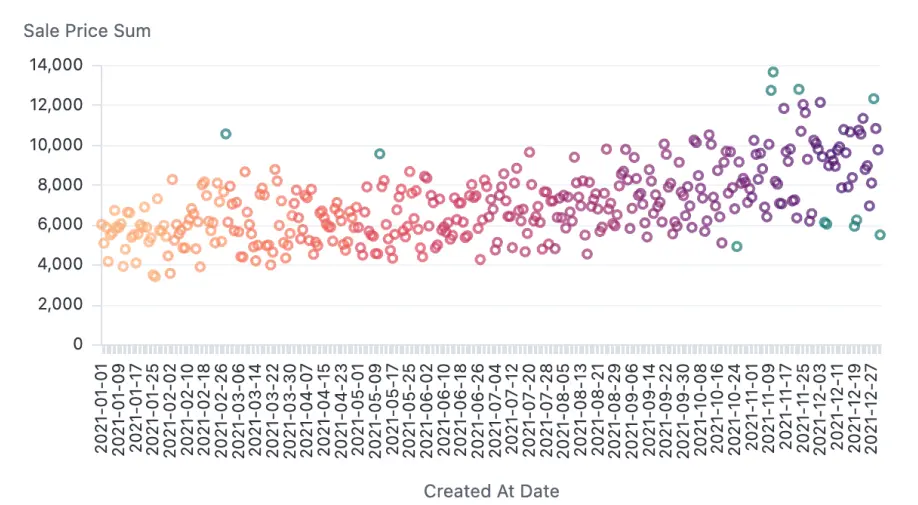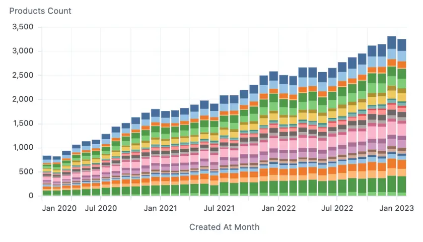 Communicate your analysis with an auto viz recommended by Omni or choose from our library. You can also customize visualizations with text, imagery, iframes and more, or use our built-in Vega editor to create something entirely new.