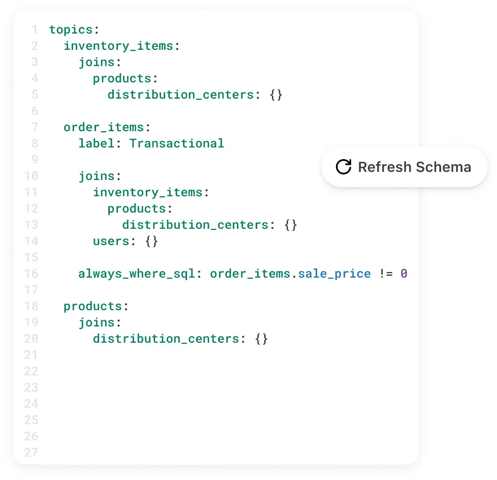 Our data model creates balance to ensure organizational consistency without constraining workflows. Omni's layered data model allows you to keep in sync with the database and create a single source of truth while maintaining flexibility for ad hoc exploration.