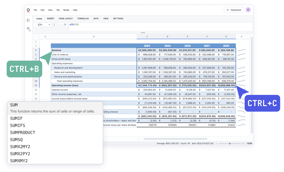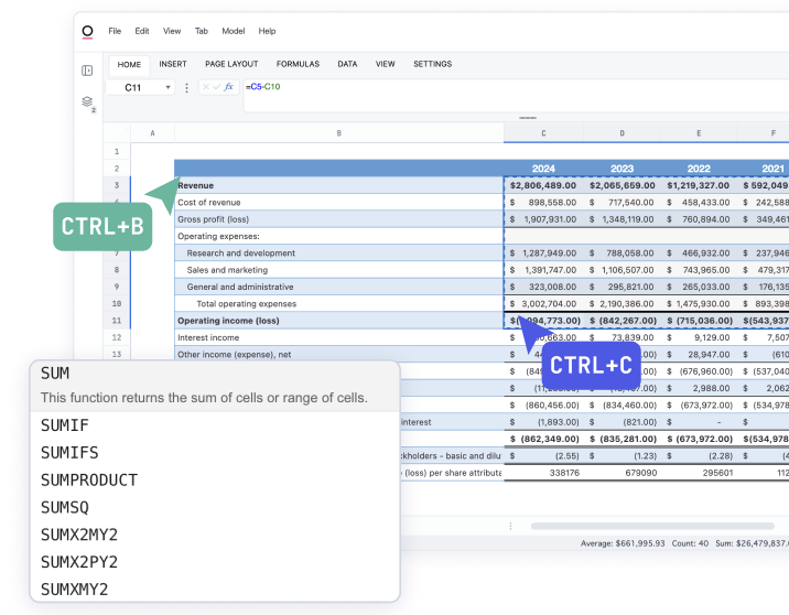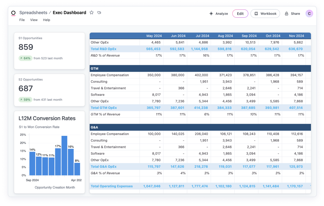 Keep using every shortcut and formula you know from muscle memory. Omni layers governed data and fast queries on top, so you work in one place without slowing down.